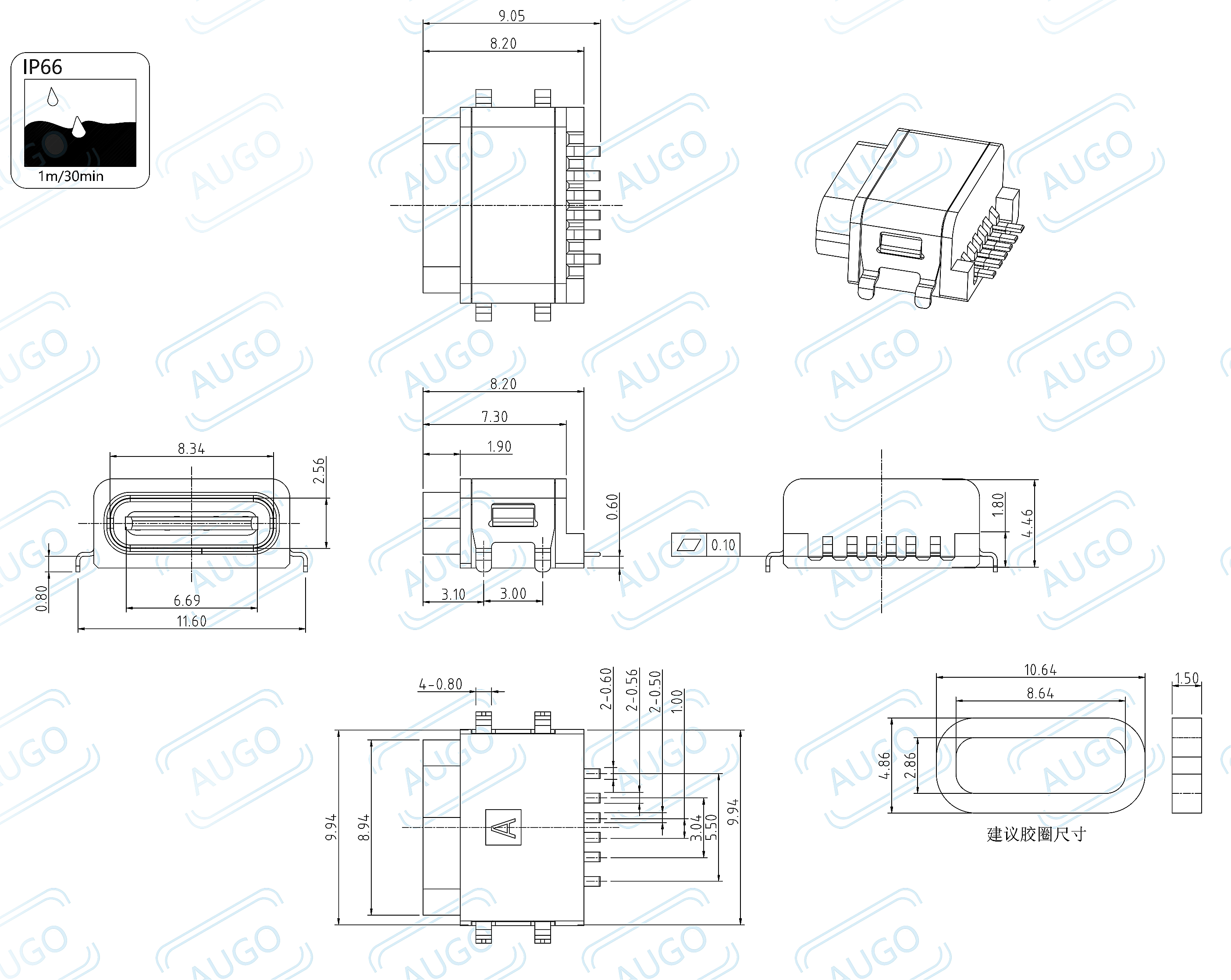 防水type-c母座 6P沉板0.6mm
